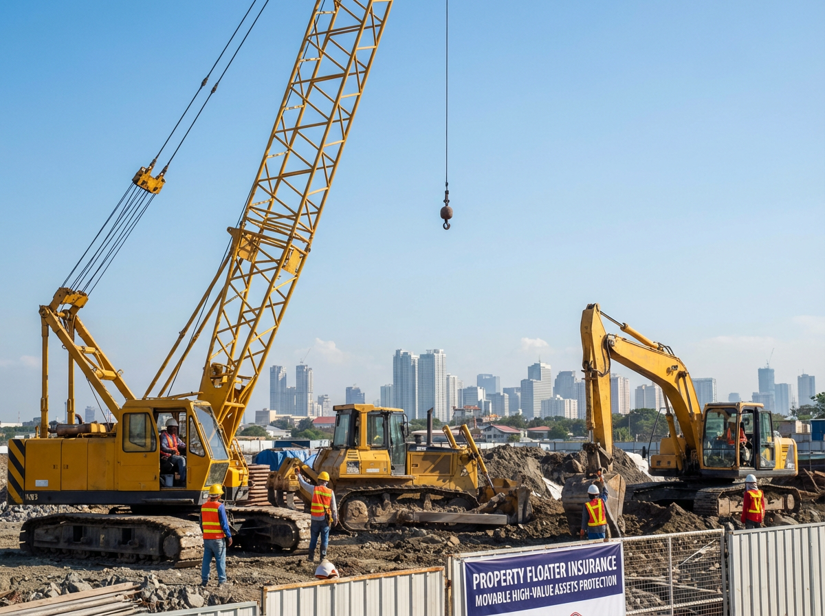 Property floater insurance provides all-risk, specialized coverage for movable, high-value assets that are not fixed to one location, such as construction equipment, machinery, or valuable personal items. It covers damage or loss from theft, fire, collisions, or accidents while in transit or on-site. This policy extends beyond standard coverage, ensuring protection for equipment like cranes, bulldozers, and tools used by contractors or businesses.